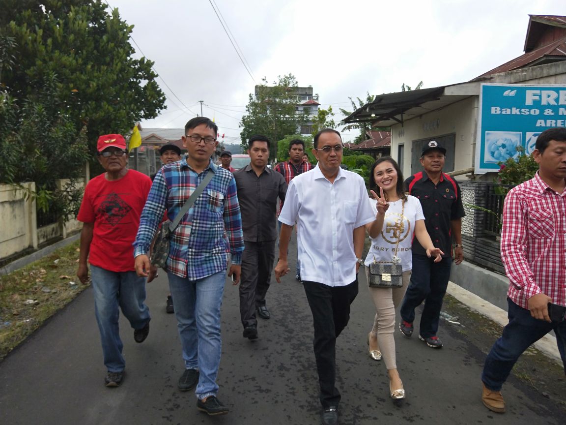 CYBERSULUT.NET – Calon Bupati dan Wakil Bupati Minahasa Royke O. Roring (ROR) dan Robby Dondokambey (RD) melakukan blusukan ke pusat pertokoan di Langowan, Senin (26/3).