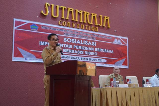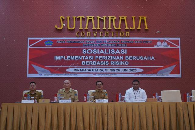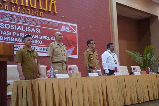 CYBERSULUT.NET – Pemerintah Kabupaten Minahasa Utara (Minut) melalui Dinas Penanaman Modal dan Pelayanan Terpadu Satu Pintu (DPM-PTSP), menggelar Sosialisasi Implementasi Perizinan berusaha berbasis Resiko, Senin (26/06/2023) di Sutan Raja Hotel kepada sejumlah pelaku usaha di Kabupaten Minut.