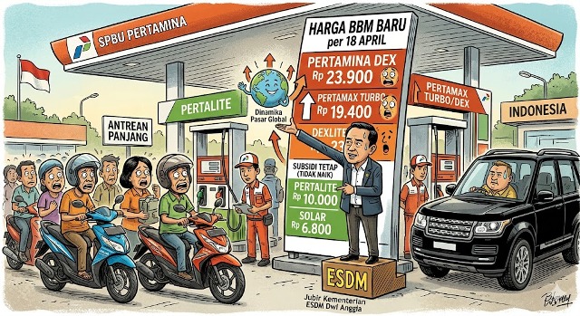 CYBERSULUT.NET – Pemerintah melalui Kementerian Energi dan Sumber Daya Mineral (ESDM) resmi menyesuaikan harga Bahan Bakar Minyak (BBM) nonsubsidi mulai Sabtu (18/4). Kenaikan signifikan terjadi pada beberapa jenis BBM nonsubsidi, yang dipicu oleh fluktuasi harga minyak mentah dunia dan nilai tukar mata uang global.